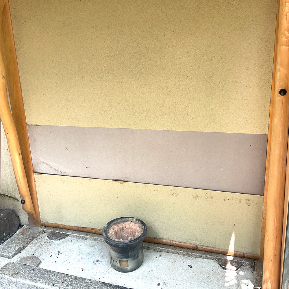 茶室腰壁にワーロンシート(和室調耐久素材)を取付施工、四方木製枠の製作