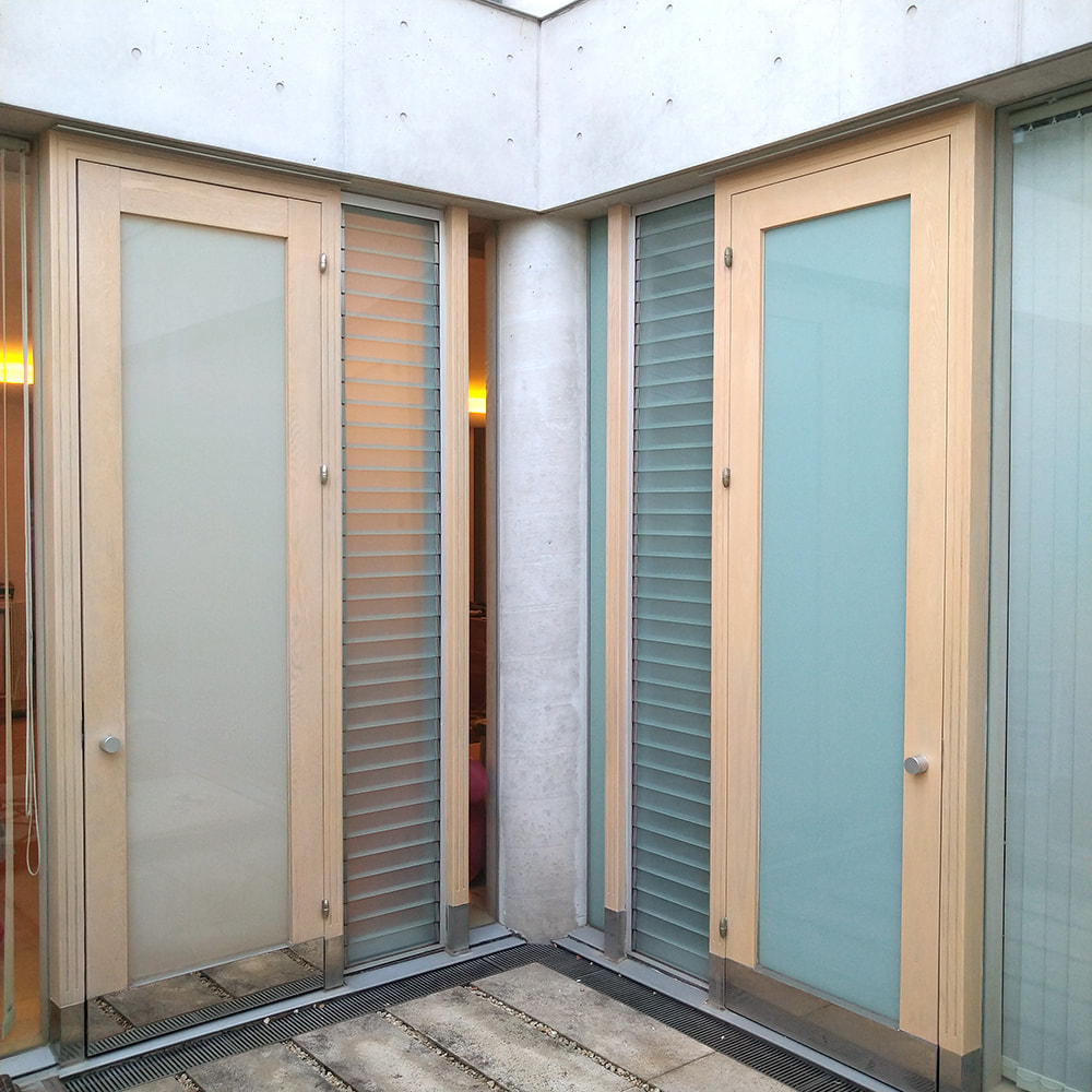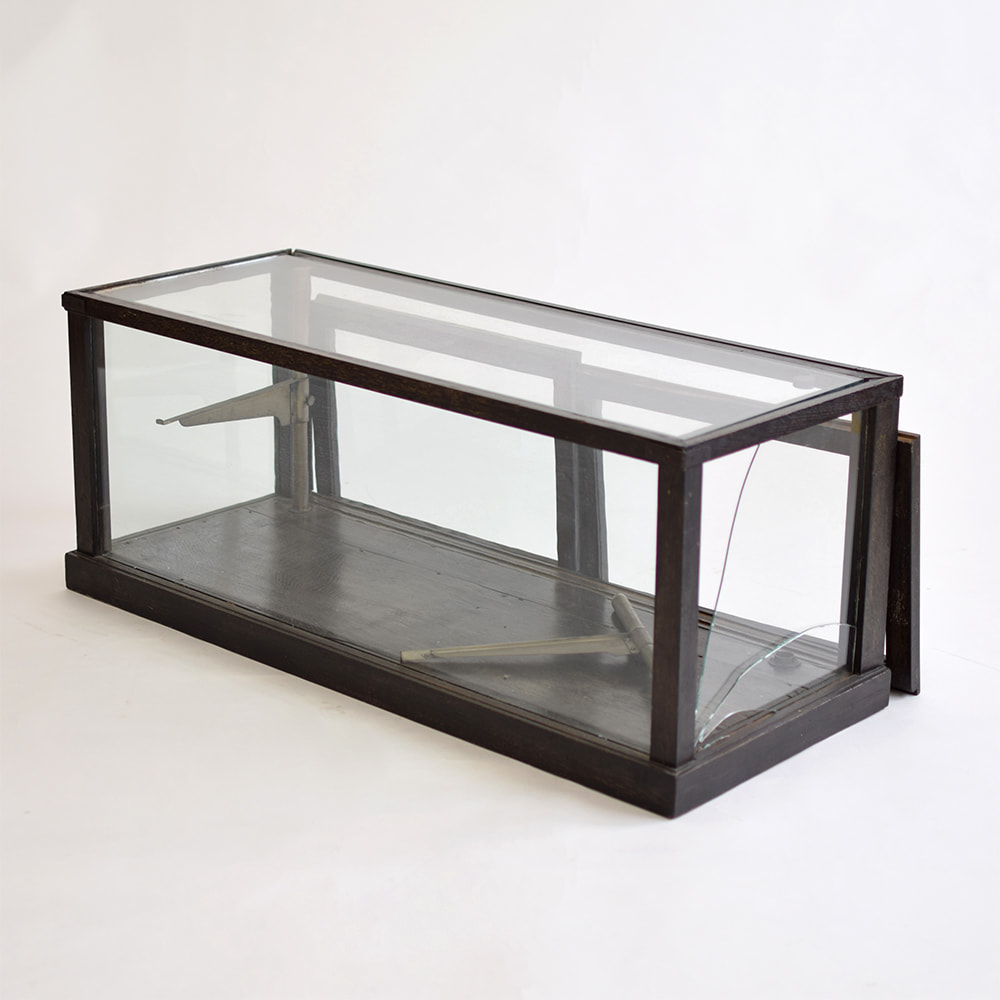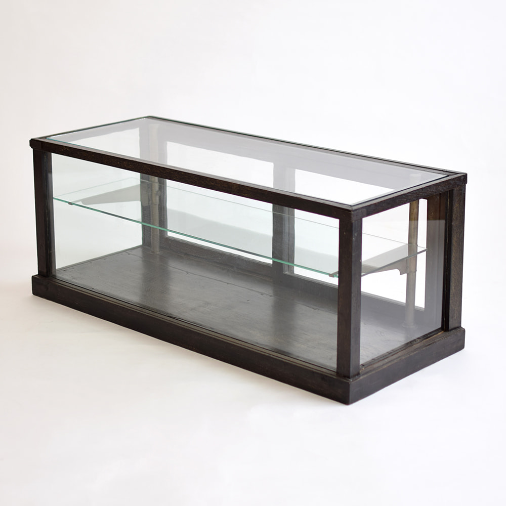 ガラスケースの側面と棚板のガラス交換、組み直し、塗装補修