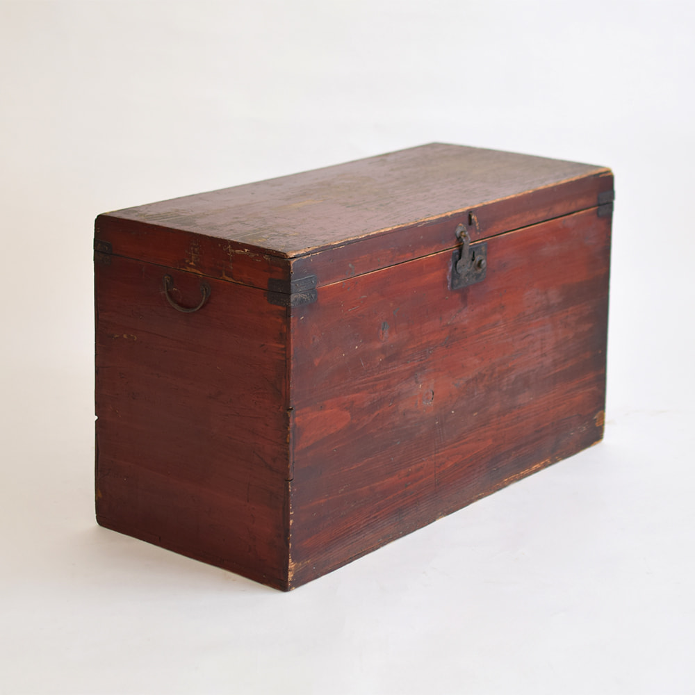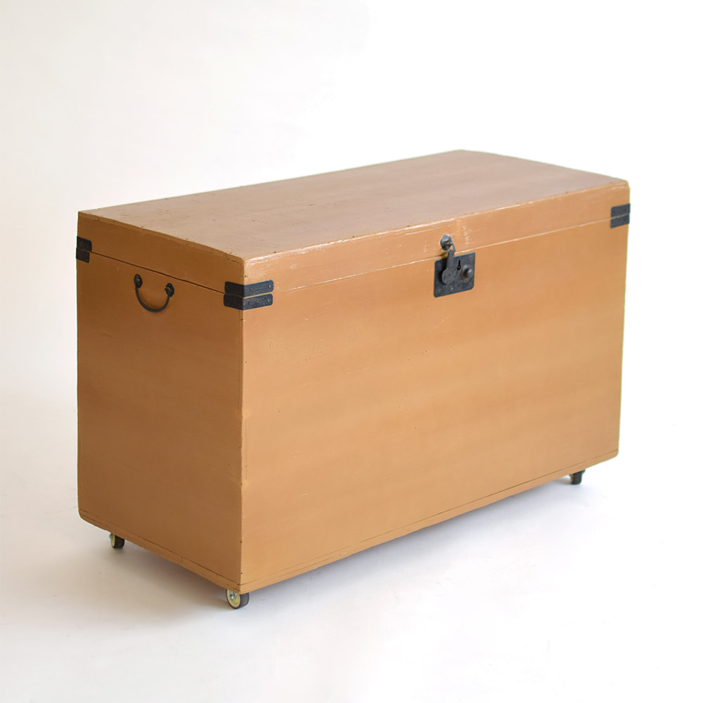 長持の上塗り(艶消し仕上げ)、蝶番交換、キャスター取付、底板補強