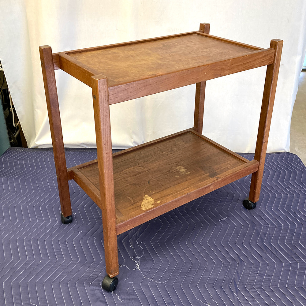 木製ワゴンの全体塗装補修、キャスター交換