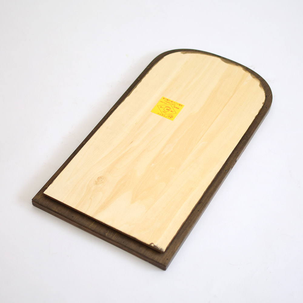 鏡の裏板交換(壁面に取付可能なマジックテープ仕様に)、枠の補強・塗装コーティング