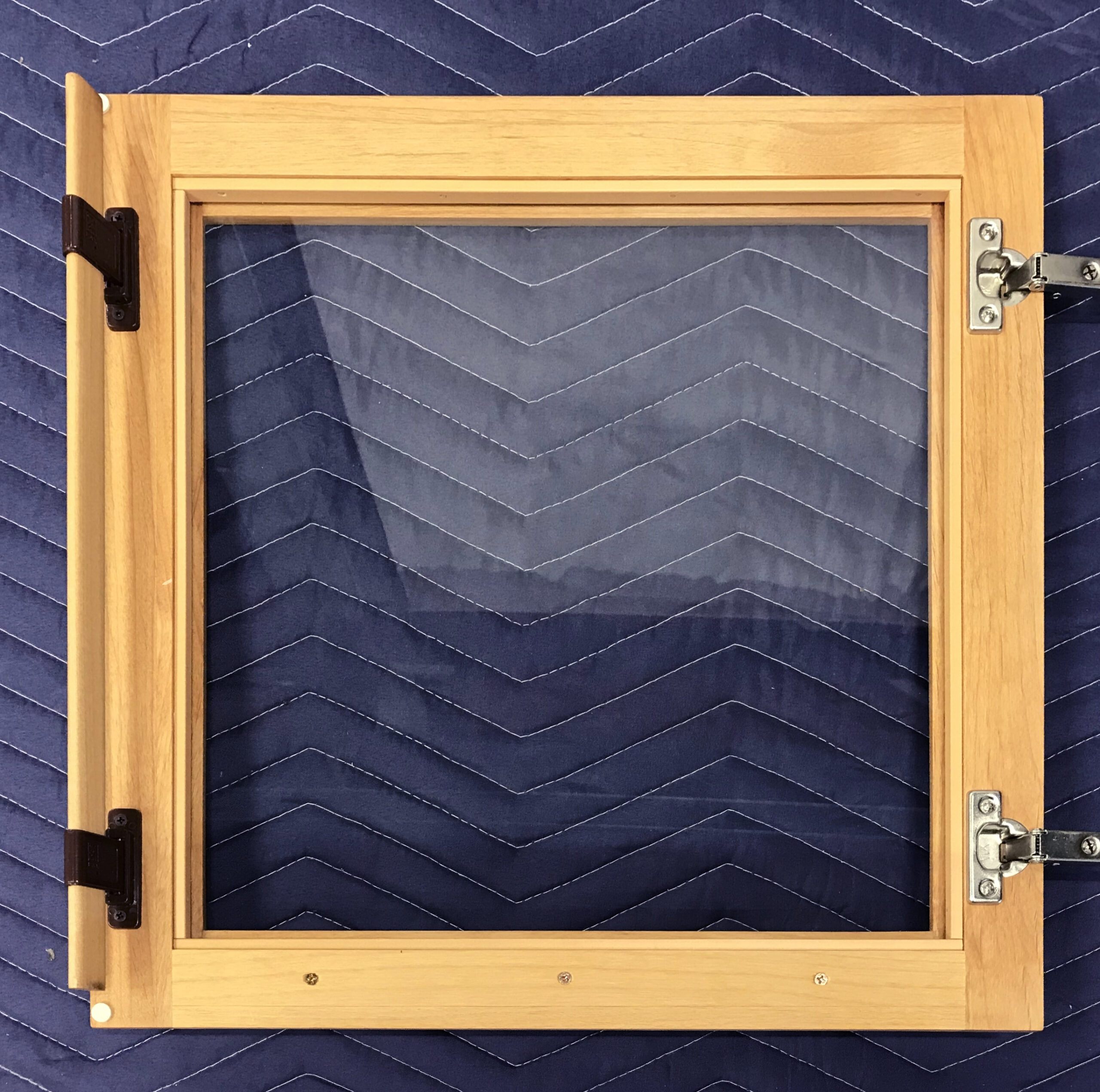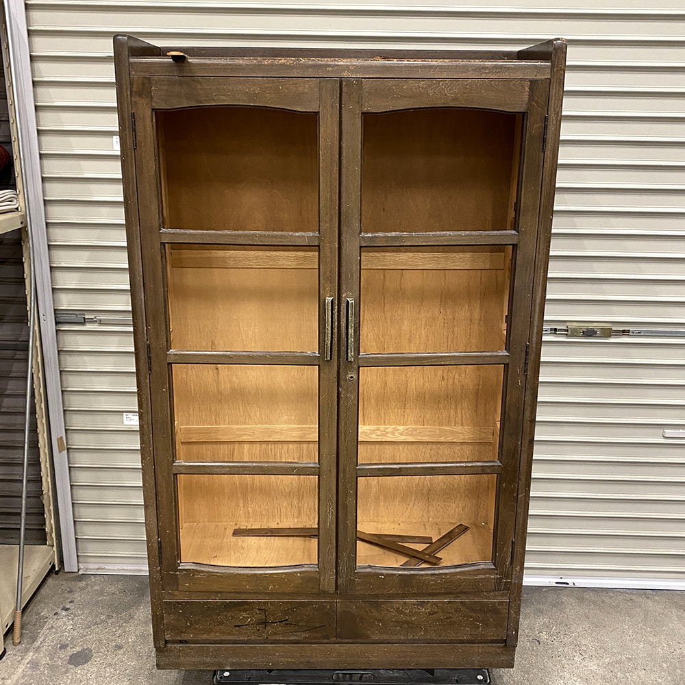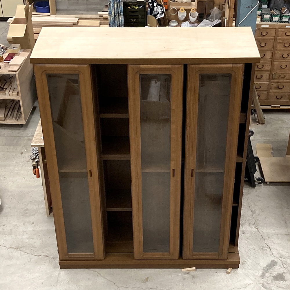 本棚のガラス交換、外装・金物の塗装補修、玉閉まり金物の取り付け