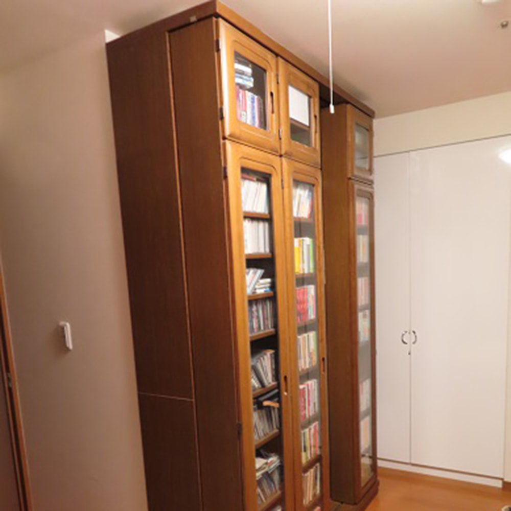 システムブックシェルフの高さをご新居の天井高に合わせて低く調整(上段カット・側板調整)