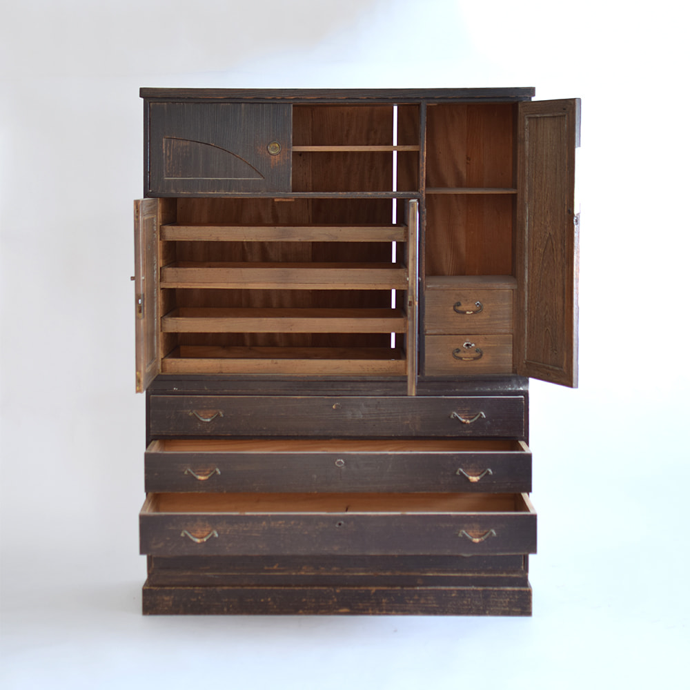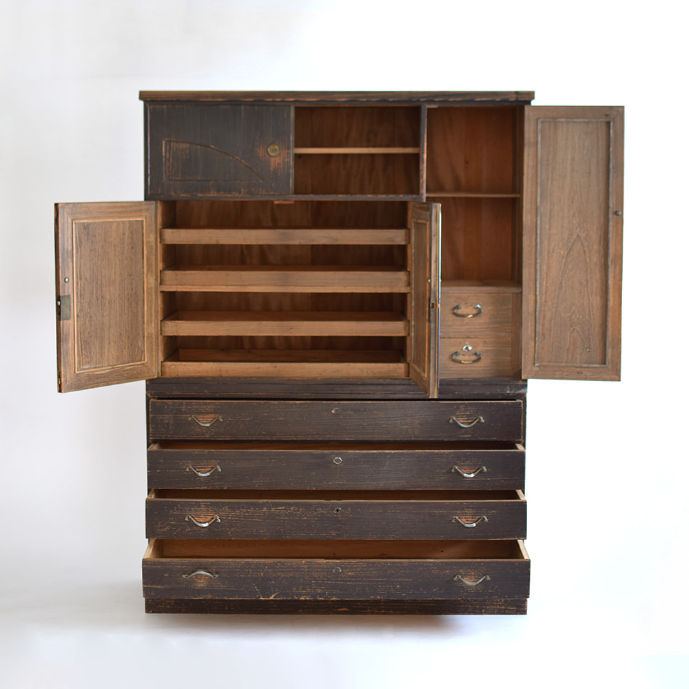 箪笥の引き出し・扉調整、隙間・割れ接着、引き出し底板外れ補修、背板割れ部分の埋め木・接着