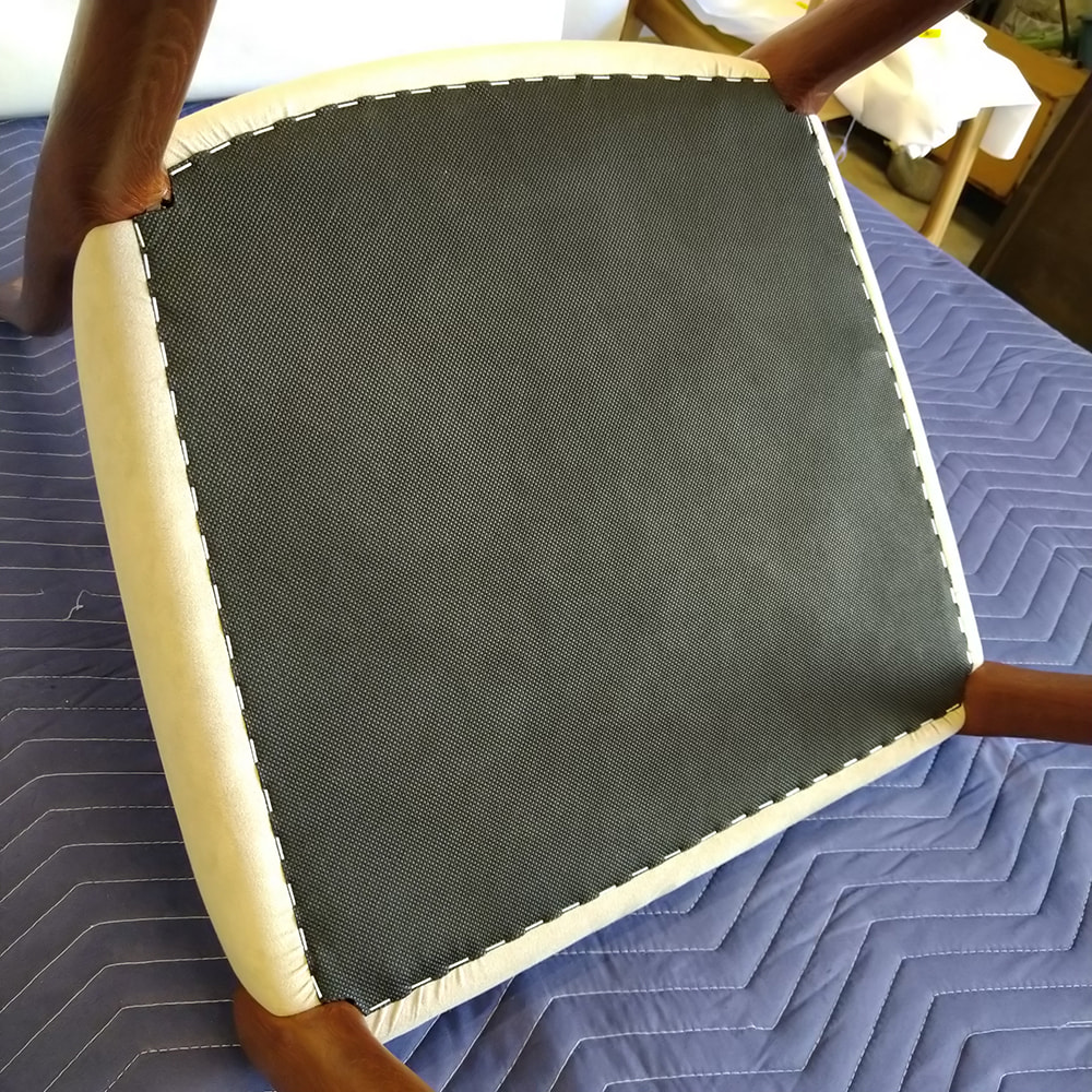 椅子の座面を撥水防汚加工生地に張り替え、内部クッション交換、木部組み直し