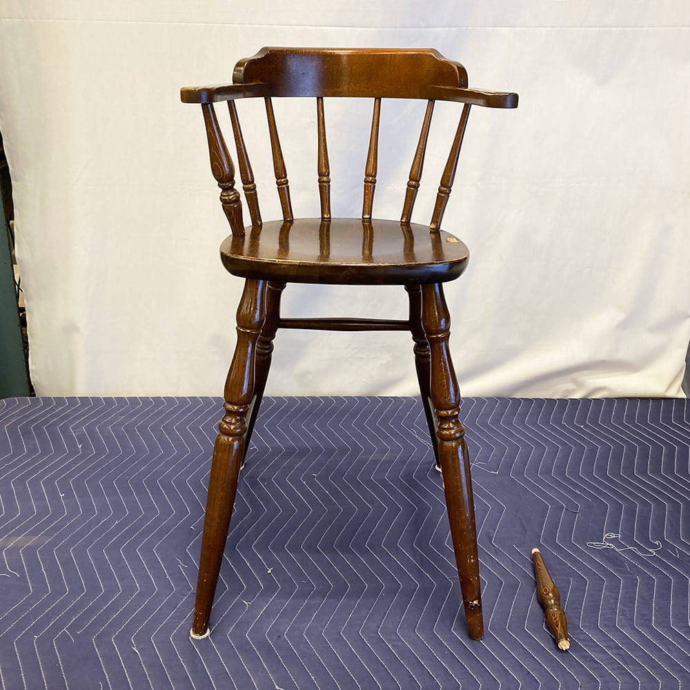 ウィンザーチェアの木部組み直し・割れ補修、フレーム塗装補修