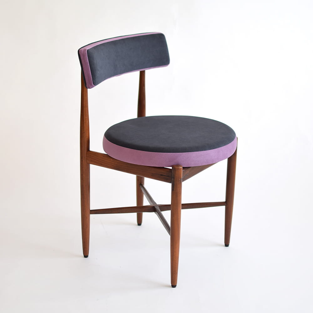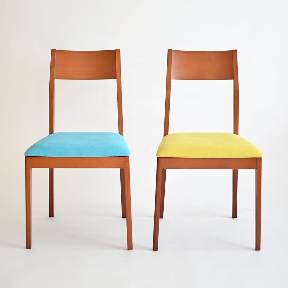 G-planフレスコダイニングチェアのフレーム組み直し、背・座張り替え(張地:UL5788×UL9441)
