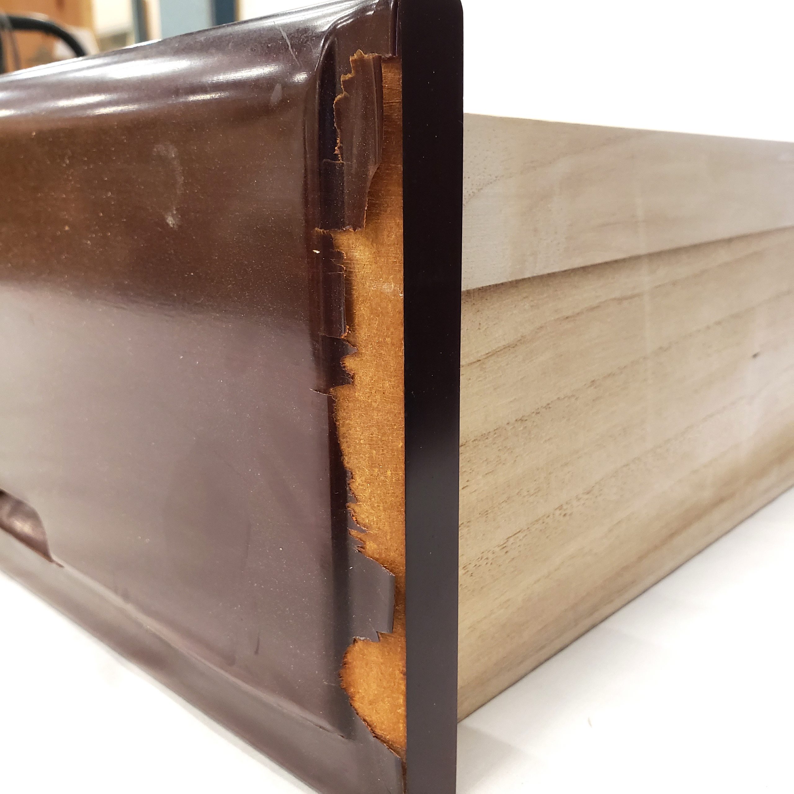 整理ダンスの引き出しの前板交換/チェリー無垢材使用、面取り・手掛け加工、色合わせ塗装