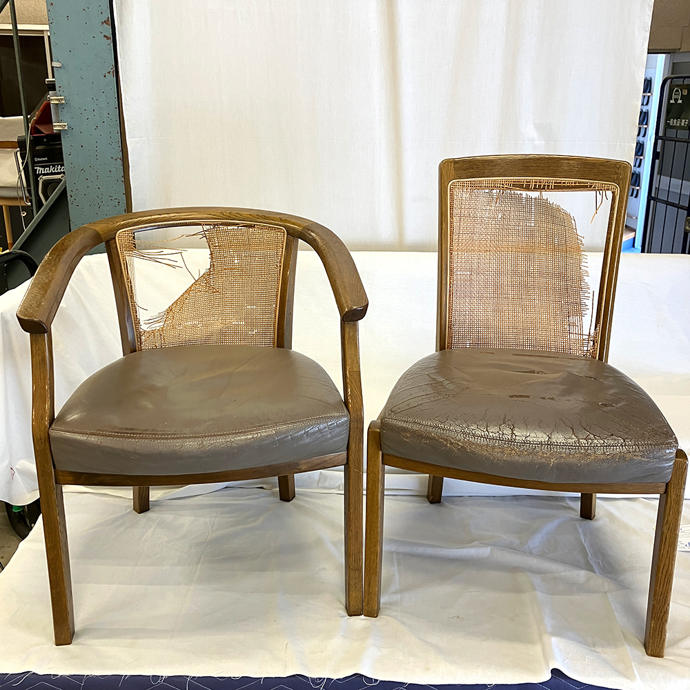 イタリア製チェアの背・座面張り替え、フレーム組み直し