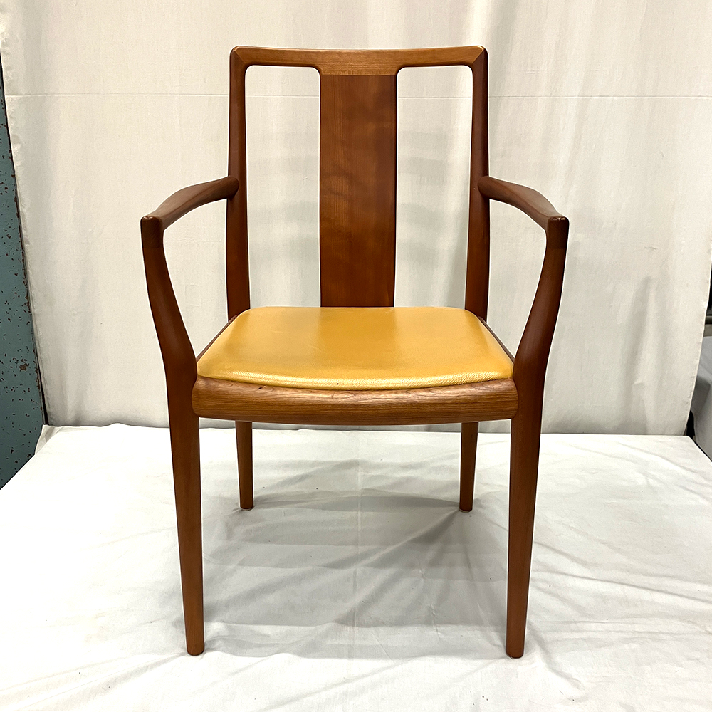 オーレ・ヴァンシャー コロニアルチェアのフレーム組み直し、後脚2本新規製作(マホガニー材・ウレタン着色)、前脚接着補修、座面ウェビングテープの張り戻し・ラタン取り外し