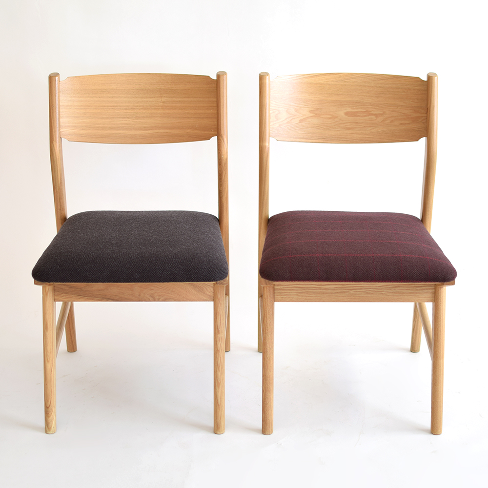 unico製チェアの座面張り替え/カバーリングからボウズ張り仕様に変更(張地:左 TR2011・右 RB0343)