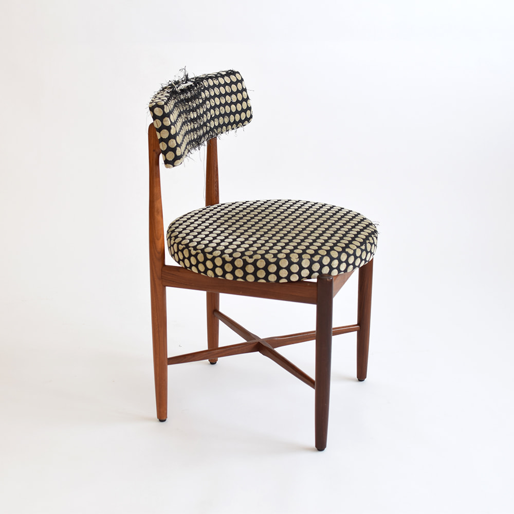 G-planフレスコダイニングチェアのフレーム組み直し、背・座張り替え(張地:UL5788×UL9441)