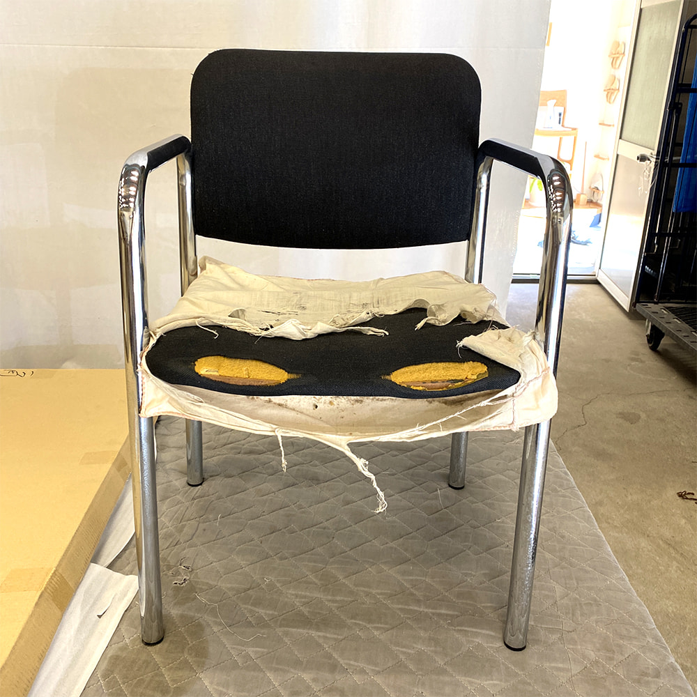 ダイニングチェアの座面張り替え(写真は裏張りの比較)