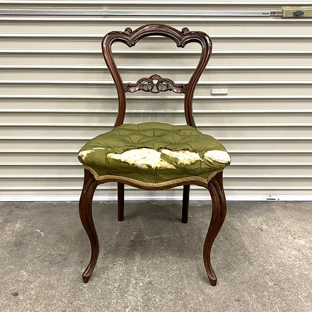 アンティークチェアの座面張り替え、ボタン締め加工無しに変更