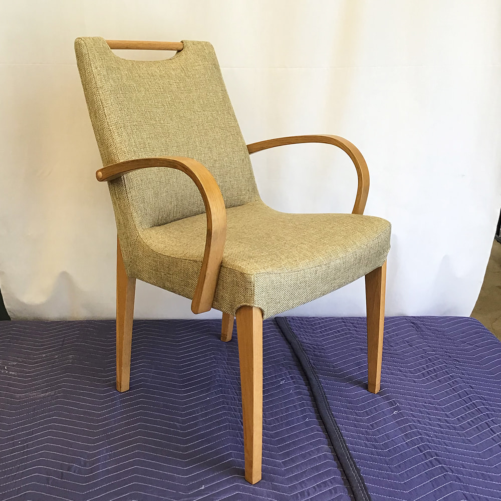 ダイニングチェアの背・座張り替え、肘掛けの色剥げ補修