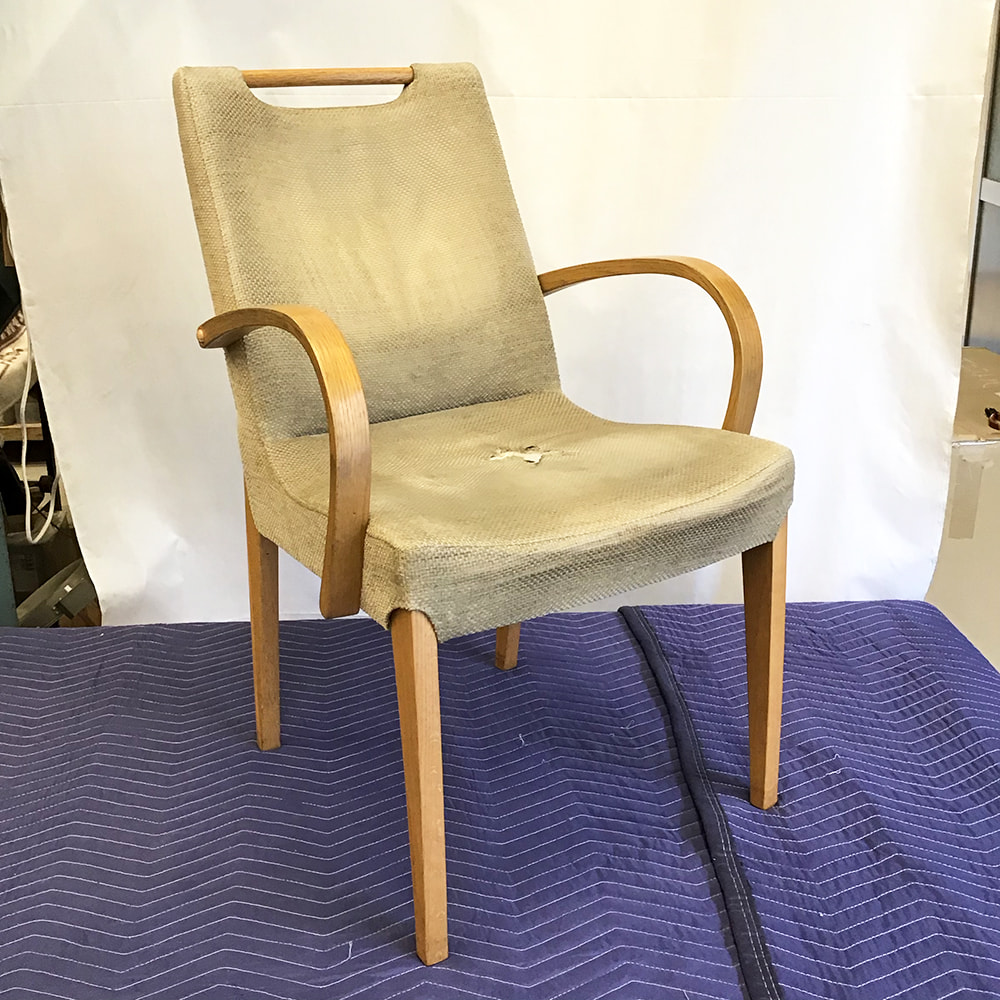 アームチェアの座面張り替え(ダイメト仕様に変更)、木部組み直し
