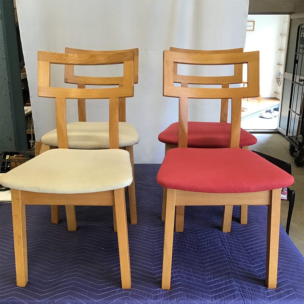 ダイニングチェアの座面張り替え(張地:KV/Sa10-557/501他)