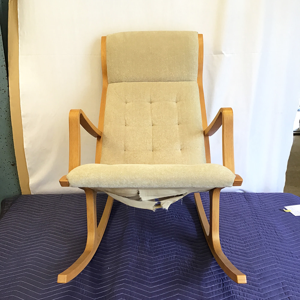 椅子の背・座張り替え、フレームの着色補修(張地:DAW/US48)